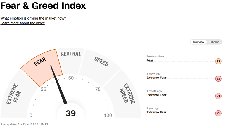 Source: Market Watch, via CNN’s Fear & Greed Index, as of April 13th, 2026.